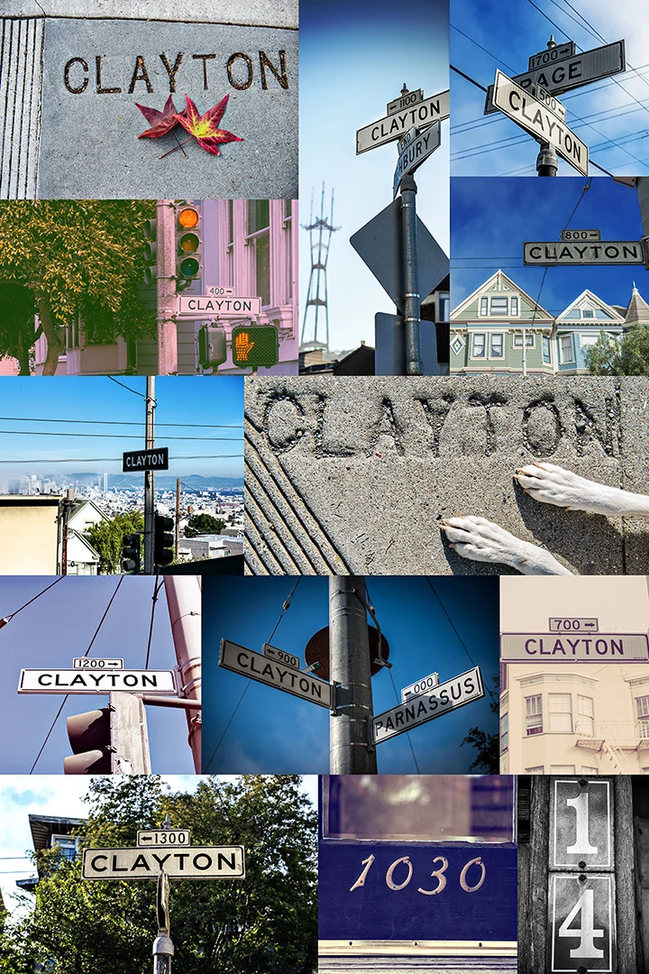 As a welcome present for the kinder's arrival I walked 'Clayton St.', with my wife and our dog, in San Francisco and memorialized his name. The signs, intersections and even the paws of our dog, along with pebbles, minutia, telephone lines and city scape all played a hand in framing his name. The entire time we walked I kept thinking of the The Book of Dede Korkut, tales from a 9th century nomadic Turkish tribe in Central Asia, where Grandfather Korkut names things into creation. Although I'm no where near being a grandfather, the act of photography, of recording, is an act of creation. The moment that might've passed unseen can be explored, scrutinized, memorialized, and at times, given a life beyond the actual moment.